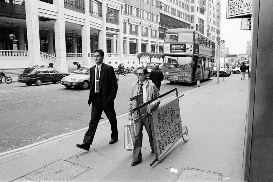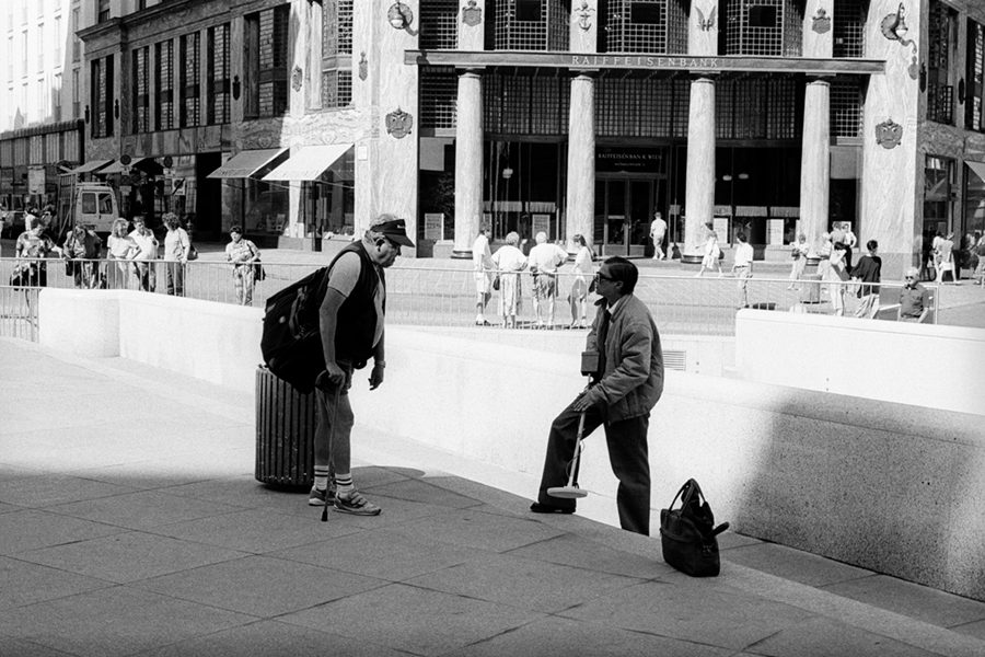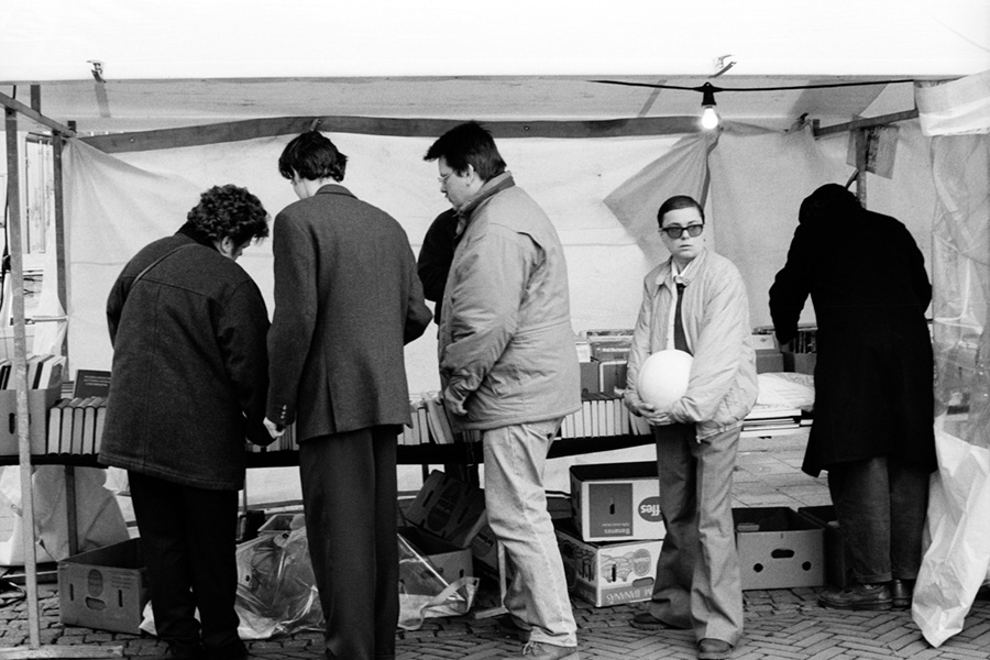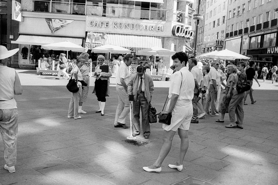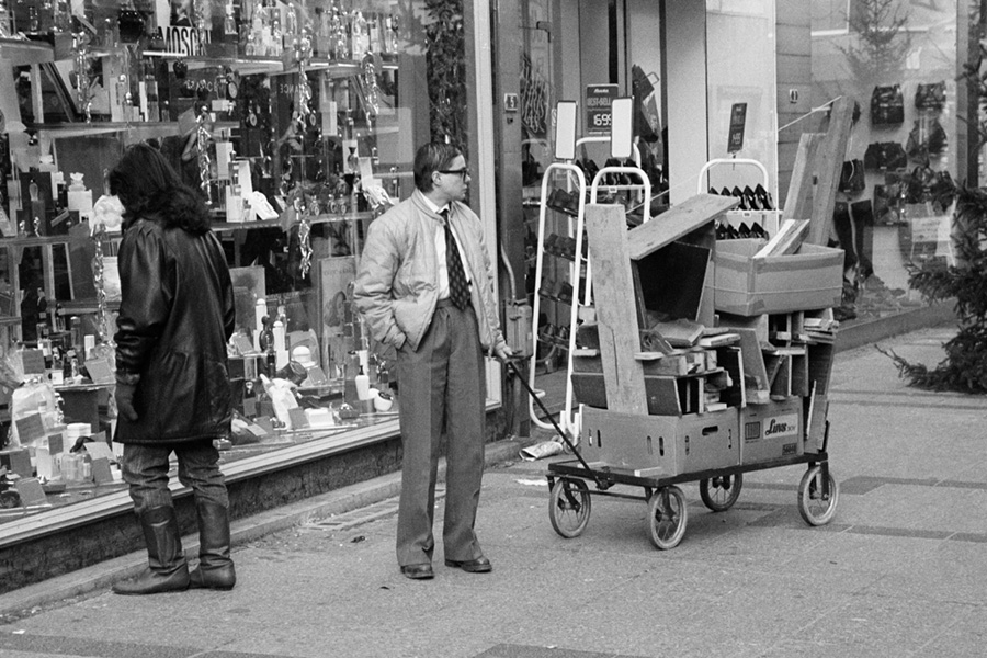 As a spectator (photographs and videos) of public life and as a participant (performances), Pacquée tries to find answers to the most elementary questions of existence. In this respect the street is her arena of study. She sees the street as a living setting, in which she moves discreetly (‘street rambling’), recording events from a particular viewpoint with a camera. Her interest in rituals and the metaphysics of religious experience, anonymity, city wandering and collecting of concomitant sounds and images – recreation and appropriation of reality by extracting details from their everyday context are also important themes in her work. Much is left to chance.